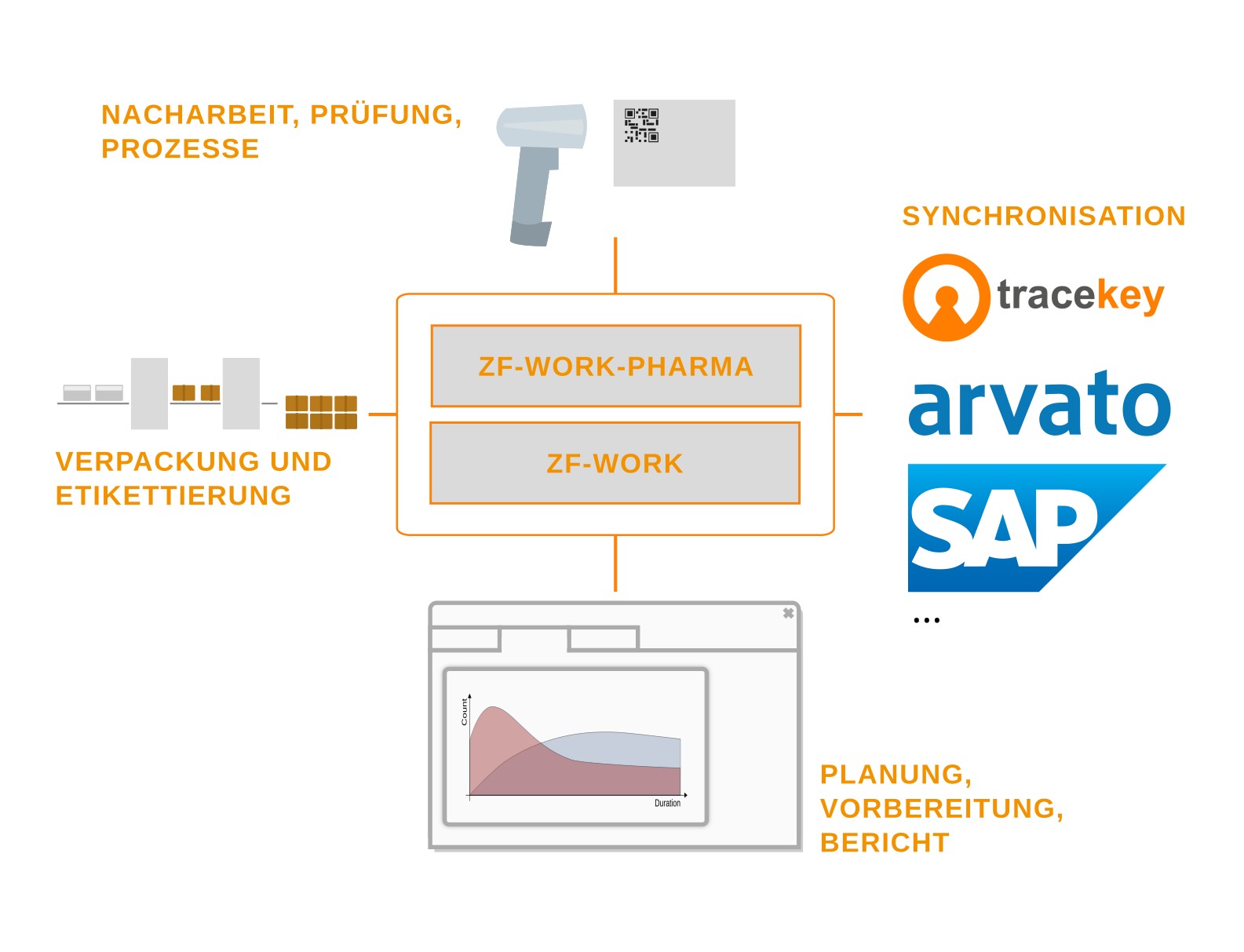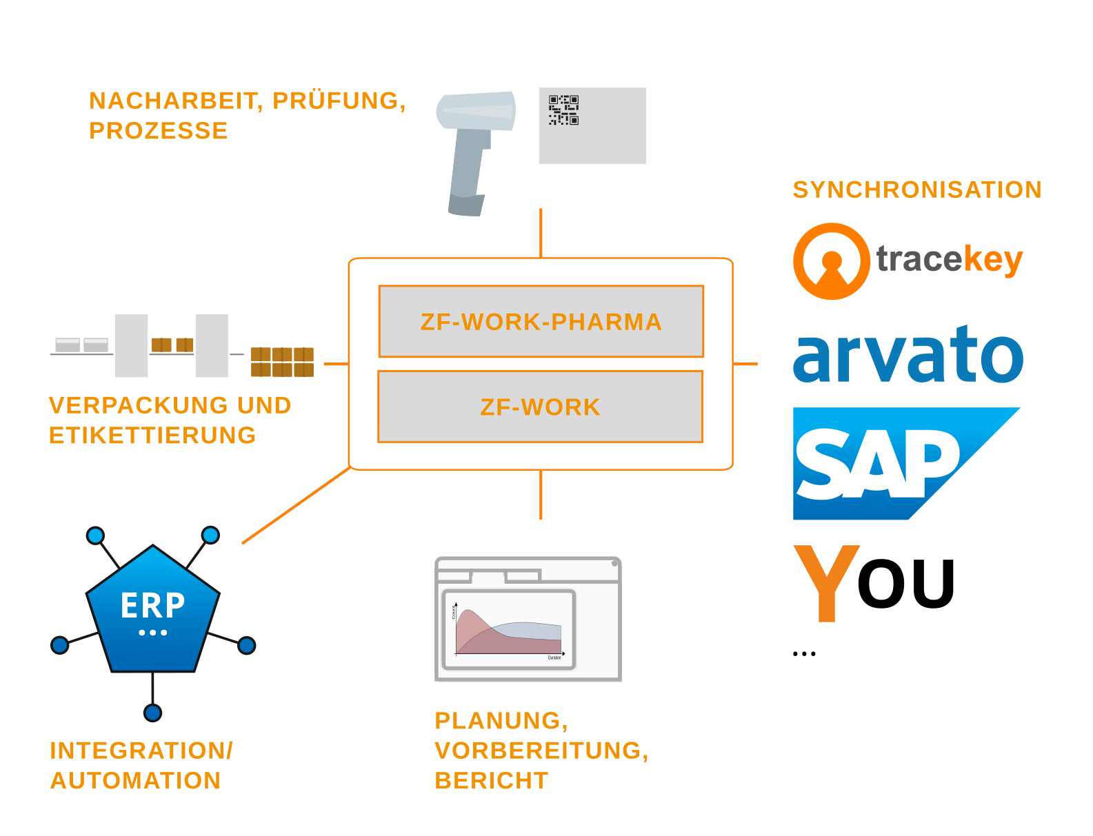Das Produkt zf-work-pharma bietet eine kostengünstige Level 3 Track-and-Trace-Lösung für die pharmazeutische Serialisierung in der Produktion. zf-work-pharma, das aus einer Zusammenarbeit mit der tracekey solutions GmbH entstanden ist, rundet den Serialisierungsprozess perfekt ab.